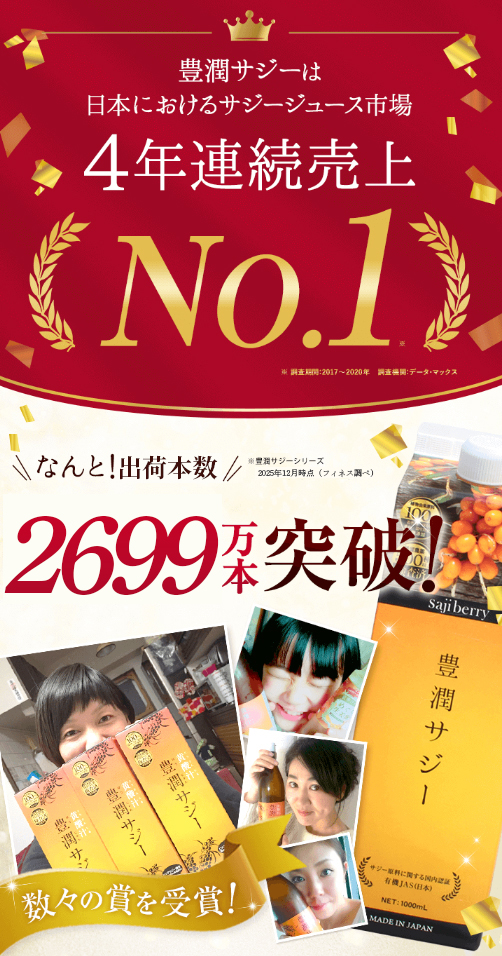 ジュースタイプの【豊潤サジー】は累計出荷本数2,699万本※(※豊潤サジーシリーズ 2025年12月時点(フィネス調べ))以上も出荷という人気っぷり。